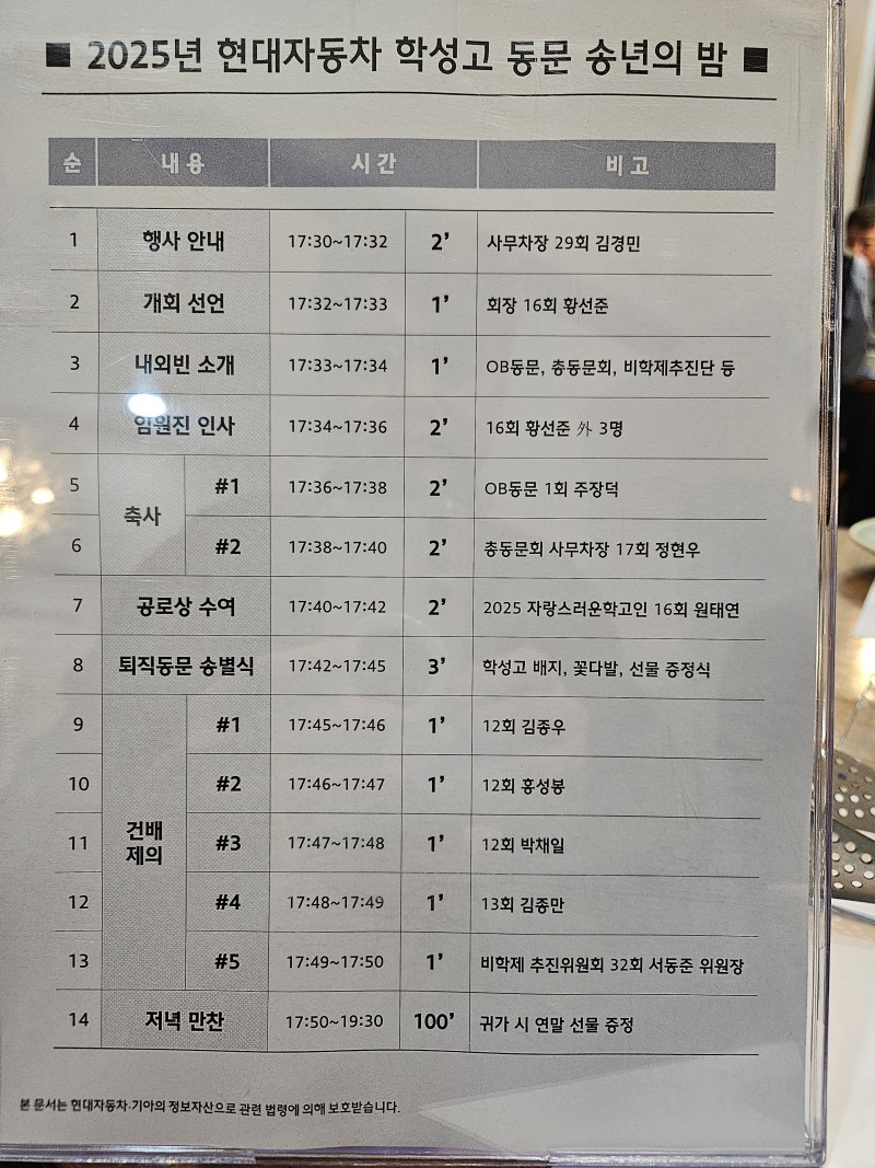 2025년 송년회 행사 사진4 페이지 정보 작성자 사무국 (1.♡.204.148) 작성일25-12-08 15:43 조회36회 댓글0건 관련링크 목록 본문 2025년 송년회 행사 사진 12월 07일 - 현대자동차 동문회 송년회 댓글목록 등록된 댓글이 없습니다. 목록