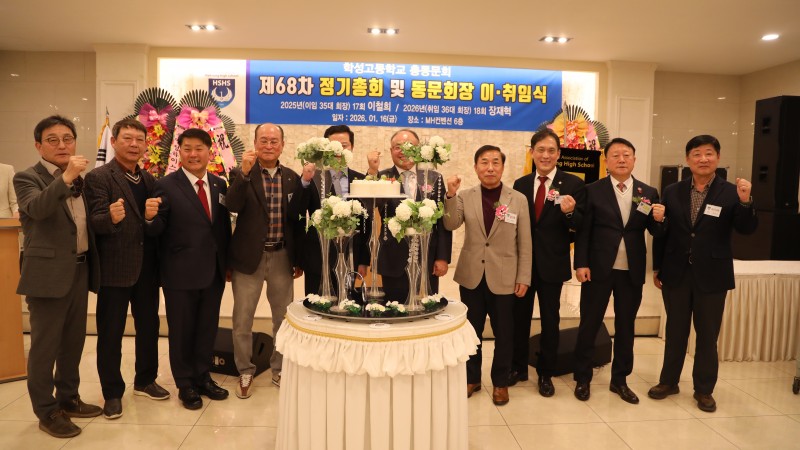 2026년 총회 및 회장 이.취임식 행사 사진 페이지 정보 작성자 사무국 (1.♡.204.148) 작성일26-01-21 15:02 조회58회 댓글0건 관련링크 목록 본문 2026년 제68차 정기 총회 및 회장 이.취임식2026.01.16(9회 이달우 동문님께서 촬영 해 주신 행사 사진 입니다) - 이임회장 : 17회 이철희 - 취임회장 : 18회 장재혁 댓글목록 등록된 댓글이 없습니다. 목록