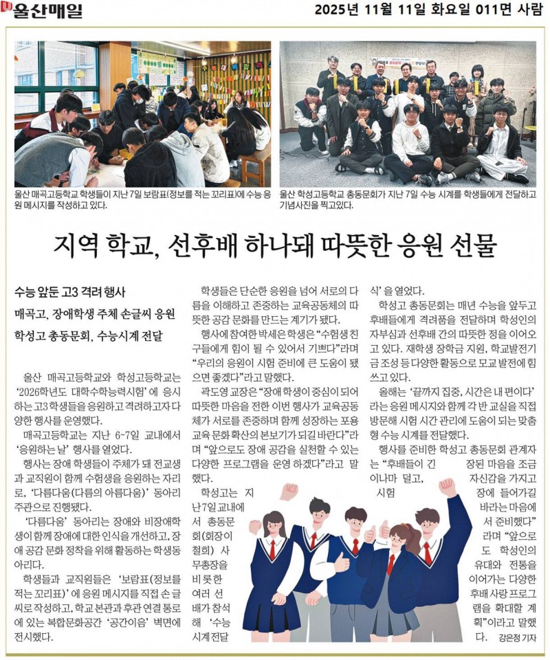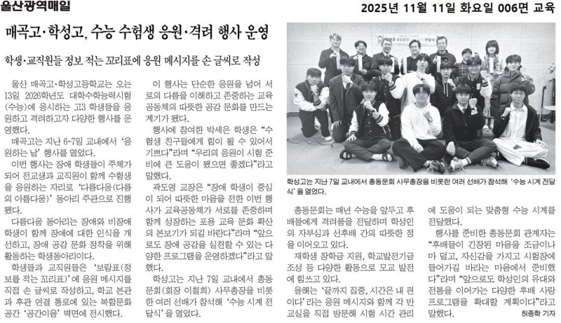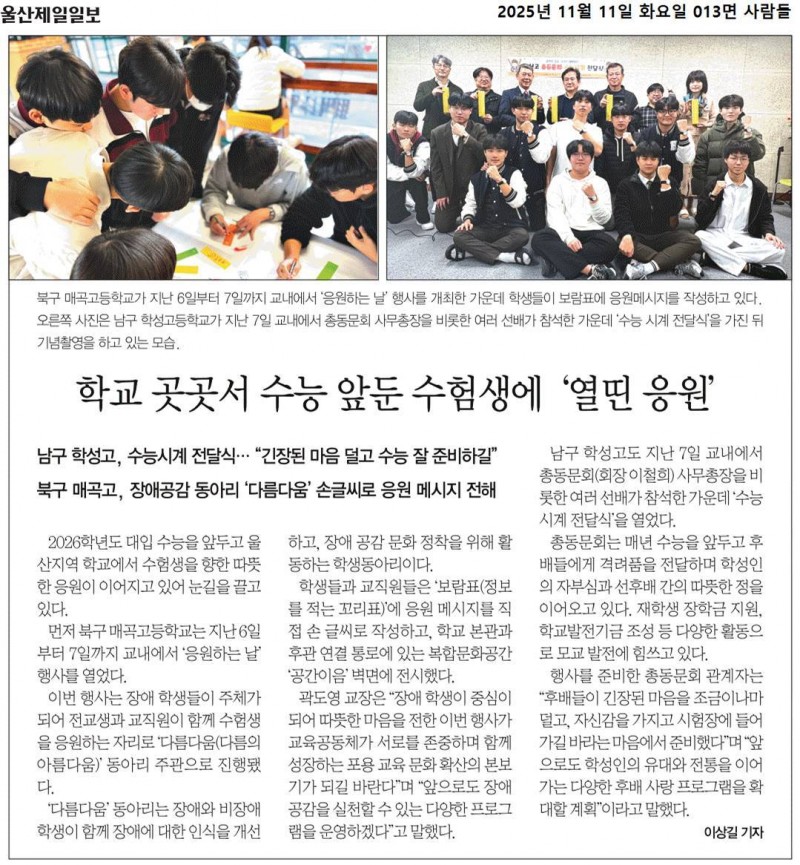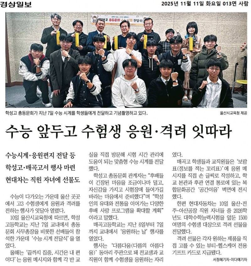 학성고등학교- 모교 3학년 수능 시계전달식(신문)